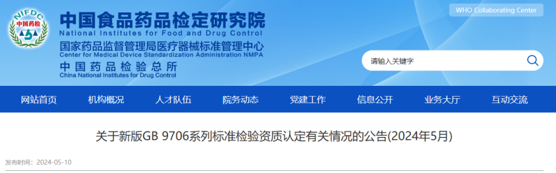 近日,中檢院發(fā)布通告:按照《國(guó)家藥監(jiān)局綜合司關(guān)于印發(fā)〈GB 9706.1-2020及配套并列標(biāo)準(zhǔn)、專用標(biāo)準(zhǔn)實(shí)施工作方案〉的通知》要求,為全面摸清底數(shù),統(tǒng)計(jì)了截至2024年5月6日,75個(gè)新版GB 9706系列標(biāo)準(zhǔn)檢驗(yàn)資質(zhì)認(rèn)定情況和GB 9706.1-2020、YY 9706.102-2021獲證機(jī)構(gòu)信息(詳見附表)。