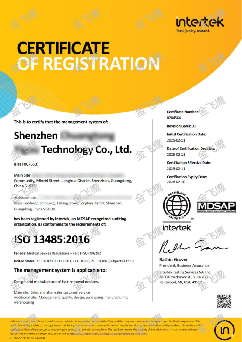 近日,金飛鷹成功輔導深圳一企業(yè)完成脫毛儀產(chǎn)品的MDSAP認證(該企業(yè)本次認證主要針對美國和加拿大兩個市場),標志著該企業(yè)的質量管理體系已符合國際最高標準,為其全球化布局奠定堅實基礎!