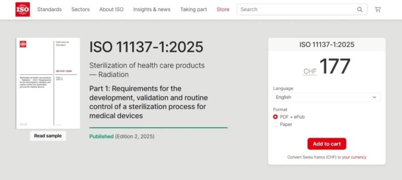 近日,國際標準化組織發(fā)布了有關(guān)醫(yī)療保健產(chǎn)品輻射滅菌的新版標準ISO 11137-1:2025 Sterilization of health care products — Radiation — Part 1: Requirements for the development, validation and routine control of a sterilization process for medical devices,通過查看ISO官網(wǎng)發(fā)布的標準樣本,我們給大家整理了本次標準主要更新內(nèi)容: