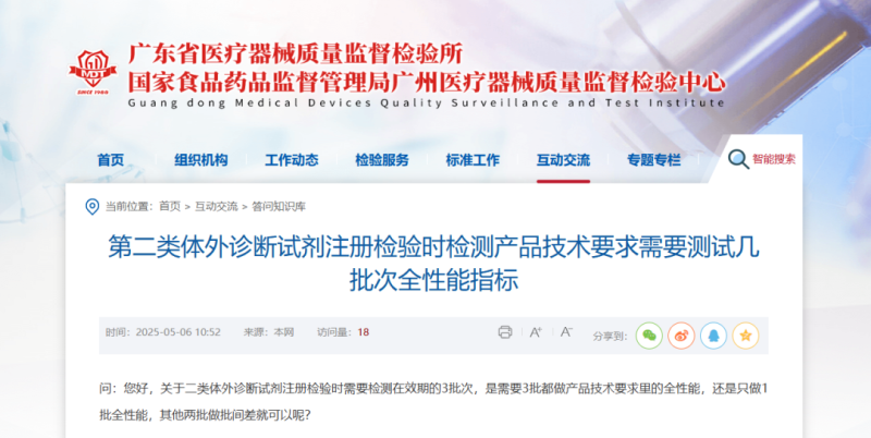 根據(jù)廣東省醫(yī)療器械質(zhì)量監(jiān)督檢驗所的答復(fù),二類體外診斷試劑檢測可選擇只做1批全性能,其他兩批做批間差。鑒于試劑注冊檢驗需要配套儀器資料,因此建議待儀器性能注冊檢測合格后或儀器已經(jīng)過第三方的計量校準(zhǔn),再申請試劑注冊檢驗。