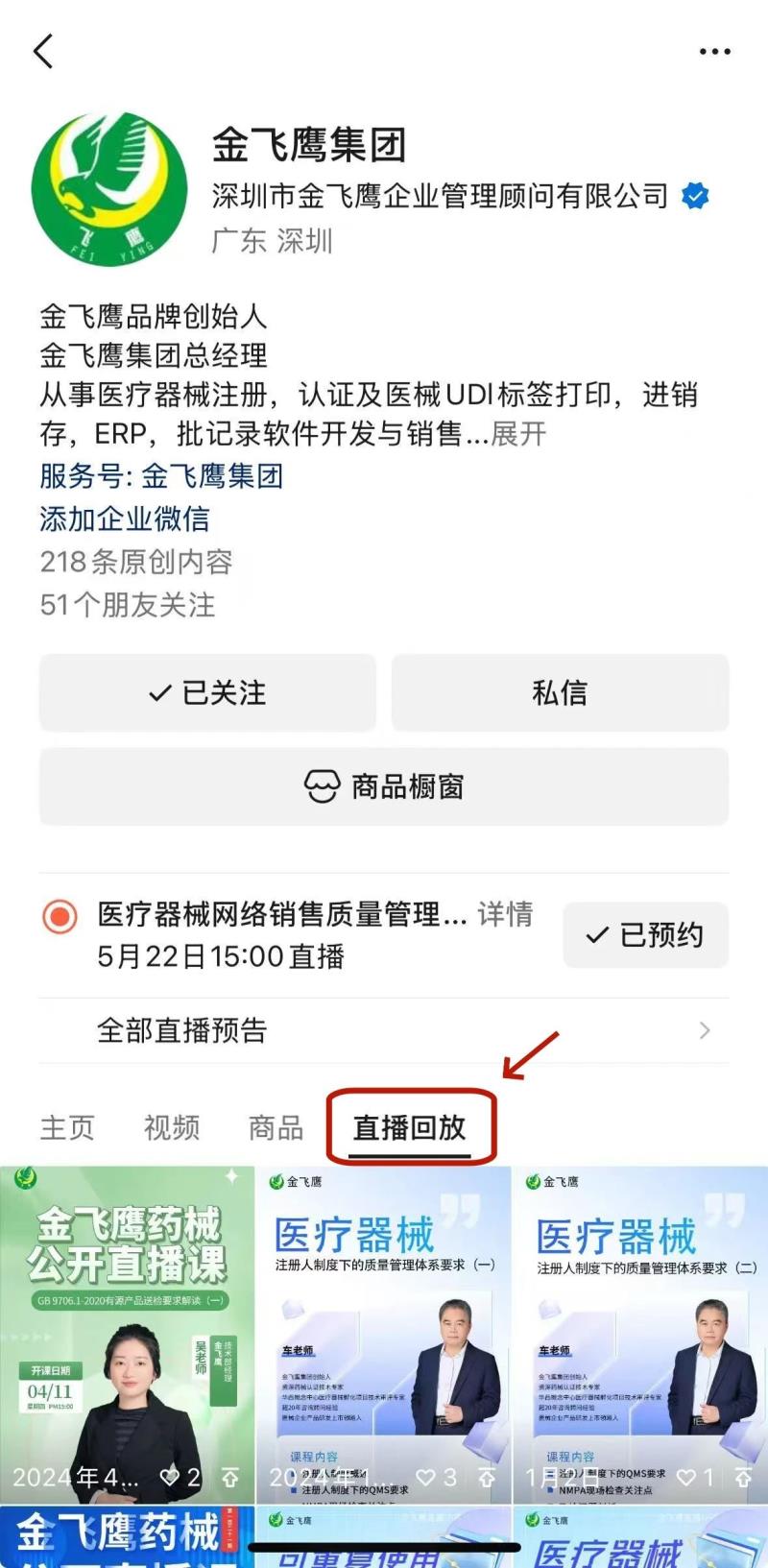 往期直播培訓(xùn)課程支持回放,關(guān)注“金飛鷹藥械咨詢服務(wù)”視頻號并點擊視頻號主頁,即可查看“直播回放”哦~