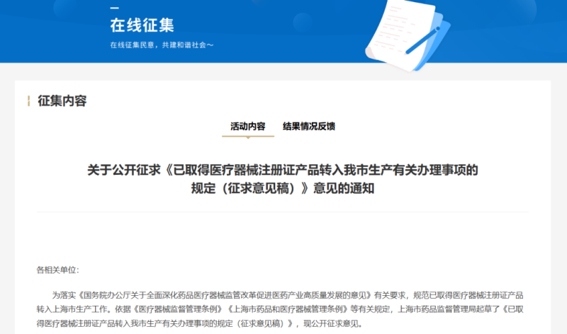 近日,上海市藥監(jiān)局發(fā)布《已取得醫(yī)療器械注冊證產(chǎn)品轉入我市生產(chǎn)有關辦理事項的規(guī)定》(以下簡稱《規(guī)定》),并向社會公開征求意見。
