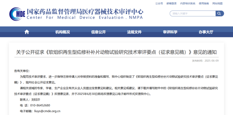 6月9日,國(guó)家藥監(jiān)局器審中心發(fā)布《軟組織再生型疝修補(bǔ)補(bǔ)片動(dòng)物試驗(yàn)研究技術(shù)審評(píng)要點(diǎn)(征求意見稿)》(以下簡(jiǎn)稱《要點(diǎn)》),并向社會(huì)公開征求意見。