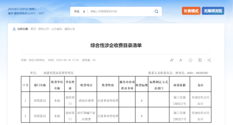 為促進(jìn)醫(yī)療器械產(chǎn)業(yè)創(chuàng)新發(fā)展,近年來全國多地出臺(tái)注冊費(fèi)減免政策,切實(shí)降低企業(yè)成本。6月30日,福建藥監(jiān)局公開《綜合性涉企收費(fèi)目錄清單》,其中提到,根據(jù)《關(guān)于進(jìn)一步落實(shí)福建省加快生物醫(yī)藥產(chǎn)業(yè)高質(zhì)量發(fā)展的實(shí)施方案的若干措施》(閩工信規(guī)[2023]7號(hào) ),醫(yī)療器械產(chǎn)品注冊費(fèi)為0,有效期至2025年12月31日。