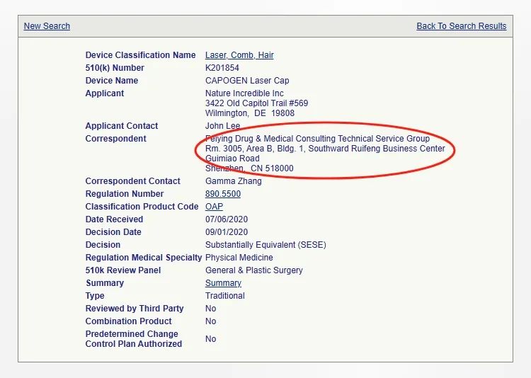 2024年9月,我們成功輔導(dǎo)美國企業(yè)Apira Science Inc獲批激光生發(fā)梳的510(k),在此之前,還有多家國內(nèi)企業(yè)獲批案例: