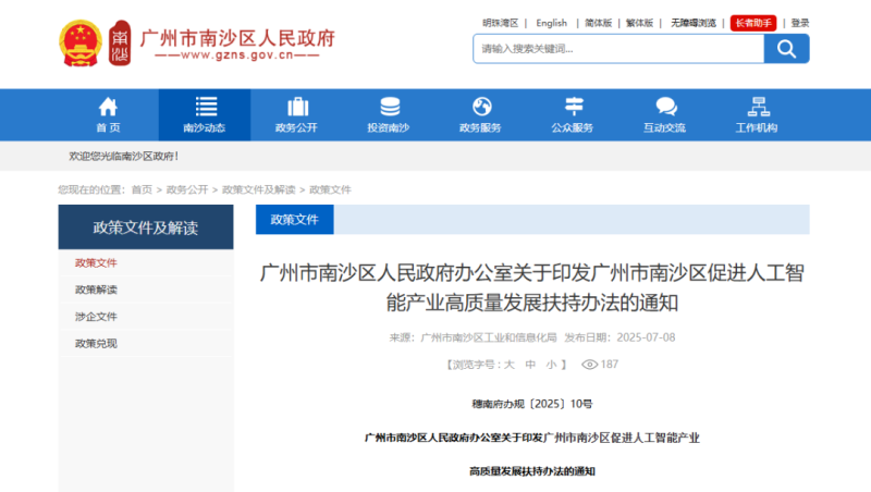 近日,廣州市南沙區(qū)人民政府發(fā)布《廣州市南沙區(qū)促進(jìn)人工智能產(chǎn)業(yè)高質(zhì)量發(fā)展扶持辦法》(以下簡(jiǎn)稱《辦法》),從強(qiáng)化人工智能關(guān)鍵要素供給、鼓勵(lì)人工智能研發(fā)創(chuàng)新等四方面共提出十六條措施,推動(dòng)人工智能與實(shí)體經(jīng)濟(jì)深度融合,加快形成技術(shù)引領(lǐng)、場(chǎng)景驅(qū)動(dòng)、生態(tài)協(xié)同的高質(zhì)量發(fā)展格局,高質(zhì)量推進(jìn)廣州南沙國(guó)際數(shù)港建設(shè)。