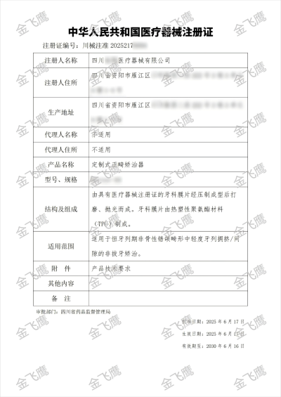 近日,金飛鷹輔導(dǎo)四川及廣東兩家企業(yè)成功取得【正畸矯治器】的注冊證,老規(guī)矩,本期文章就跟大家分享一下此類產(chǎn)品注冊的相關(guān)事項。