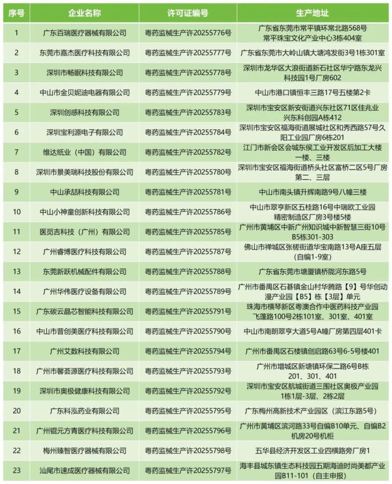 近日,廣東省藥監(jiān)局公布了《2025年6月醫(yī)療器械生產(chǎn)許可證核發(fā)清單》,據(jù)該公開(kāi)數(shù)據(jù)顯示,2025年6月,廣東百瑞醫(yī)療器械有限公司、深圳市暢眠科技有限公司、維達(dá)紙業(yè)(中國(guó))有限公司、深圳市景美瑞科技股份有限公司等共計(jì)23家企業(yè)新拿到了醫(yī)療器械生產(chǎn)許可證,具體明細(xì)如下: