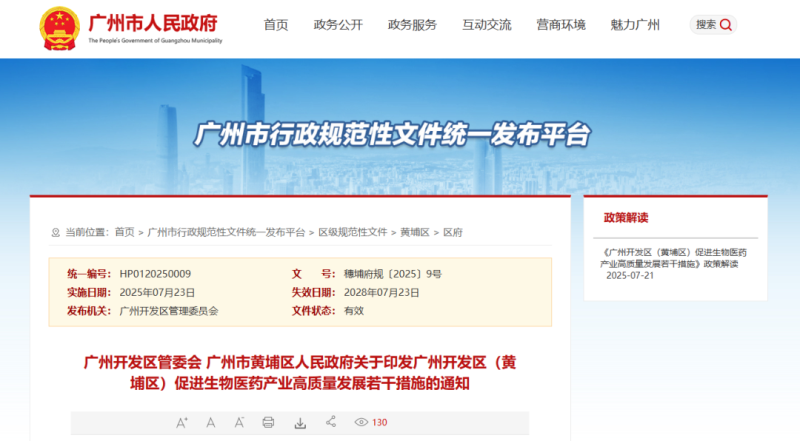 本政策措施自印發(fā)之日起施行,有效期3年。本政策措施所執(zhí)行的市級(jí)政策文件,其時(shí)效從其規(guī)定;執(zhí)行期間因上級(jí)法律法規(guī)、規(guī)章及政策調(diào)整導(dǎo)致本政策措施與上級(jí)規(guī)定不一致的,本政策措施相應(yīng)條款不再執(zhí)行?!稄V州開發(fā)區(qū)(黃埔區(qū))促進(jìn)生物醫(yī)藥產(chǎn)業(yè)高質(zhì)量發(fā)展辦法》(穗埔府規(guī)〔2024〕4號(hào))同時(shí)廢止。
