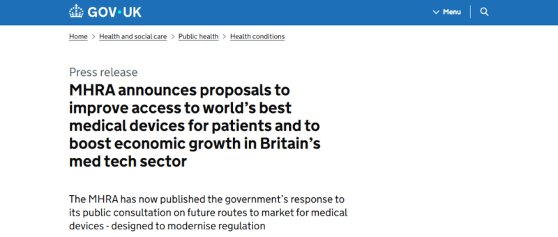 近日,英國MHRA(Medicines and Healthcare products Regulatory Agency)發(fā)布了一項政策更新,明確未來醫(yī)療器械監(jiān)管的核心方向。這一調(diào)整將直接影響所有計劃進入英國市場的制造商,以下是關鍵要點解析: