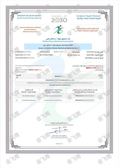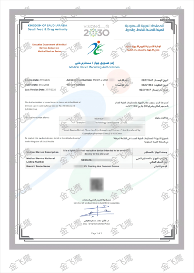素有“中東土豪”之稱的沙特阿拉伯,雖然經(jīng)濟(jì)規(guī)模和人均收入世界排名靠前,但卻是醫(yī)療器械產(chǎn)品極度依賴進(jìn)口的一個(gè)國(guó)家。因此,近年來(lái),沙特阿拉伯也是國(guó)內(nèi)醫(yī)械企業(yè)“出海”戰(zhàn)略的一個(gè)重要目標(biāo)市場(chǎng)。在脫毛儀沙特注冊(cè)領(lǐng)域,我們給大家展示7月26及27日新鮮出爐的兩張證,更多沙特注冊(cè)案例,可點(diǎn)擊右側(cè)文章?美容面罩沙特上市許可。
