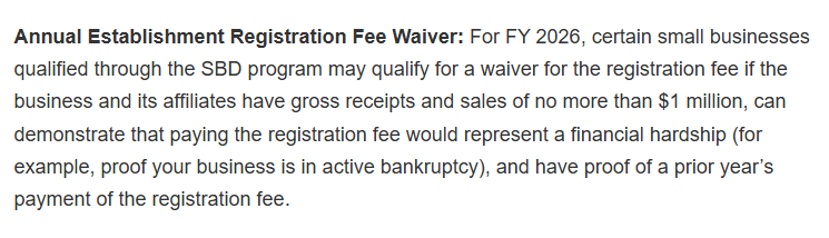 不過在費用普漲的同時,F(xiàn)DA也釋放出了給企業(yè)減負(fù)的信號:2026財年,FDA給小企業(yè)提供了 免年費 的選項,前提是這些企業(yè)證明支付費用會給他們帶來經(jīng)濟(jì)困難,具體條件如下: