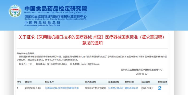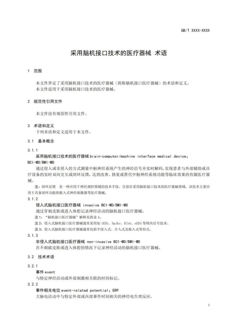 近日,國(guó)家藥品監(jiān)督管理局醫(yī)療器械標(biāo)準(zhǔn)管理中心發(fā)布《采用腦機(jī)接口技術(shù)的醫(yī)療器械 術(shù)語(yǔ)》醫(yī)療器械國(guó)家標(biāo)準(zhǔn)的征求意見(jiàn)稿,并向社會(huì)公開(kāi)征求意見(jiàn),同時(shí)提到,該標(biāo)準(zhǔn)將于發(fā)布后6個(gè)月正式實(shí)施。