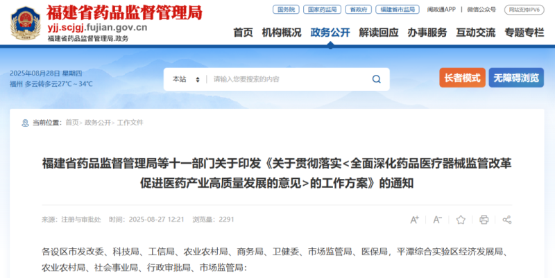 近日,福建省藥監(jiān)局發(fā)布《關(guān)于貫徹落實(shí)<全面深化藥品醫(yī)療器械監(jiān)管改革促進(jìn)醫(yī)藥產(chǎn)業(yè)高質(zhì)量發(fā)展的意見>的工作方案》(以下簡(jiǎn)稱《工作方案》),從大力支持藥械研發(fā)創(chuàng)新、提高藥械審評(píng)審批質(zhì)效、提升醫(yī)藥產(chǎn)業(yè)全過程合規(guī)水平、擴(kuò)大醫(yī)藥產(chǎn)業(yè)對(duì)外開放合作、強(qiáng)化產(chǎn)業(yè)發(fā)展和監(jiān)管體系保障五個(gè)方面共提出了24條舉措,并提到,力爭(zhēng)到