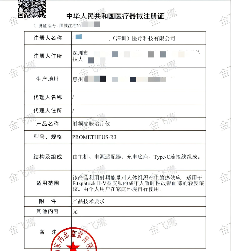 近日,金飛鷹輔導(dǎo)廣東企業(yè)成功取得【射頻皮膚治療儀】的注冊證,并且是業(yè)內(nèi)第一張手持式射頻皮膚治療儀(集射頻、微電流、光,于一體)注冊證。老規(guī)矩,本期文章就跟大家分享一下此類產(chǎn)品注冊的相關(guān)事項。
